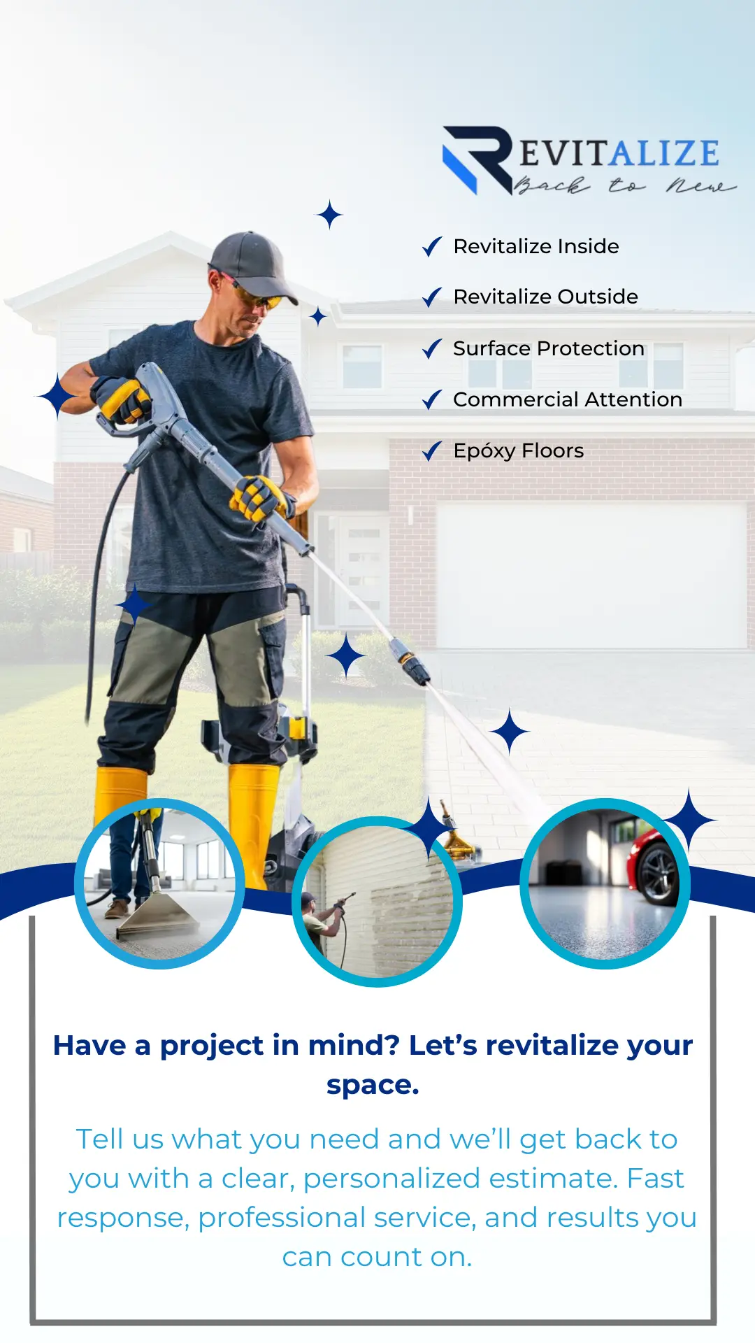 Revitalize focuses on surface restoration, protection, and long-term value. Whether it’s epoxy garage installation, carpet cleaning, pressure washing, or commercial maintenance, we follow a structured technical process rather than quick surface treatments. Our goal is to restore performance, improve durability, and bring every space back to a like-new standard.