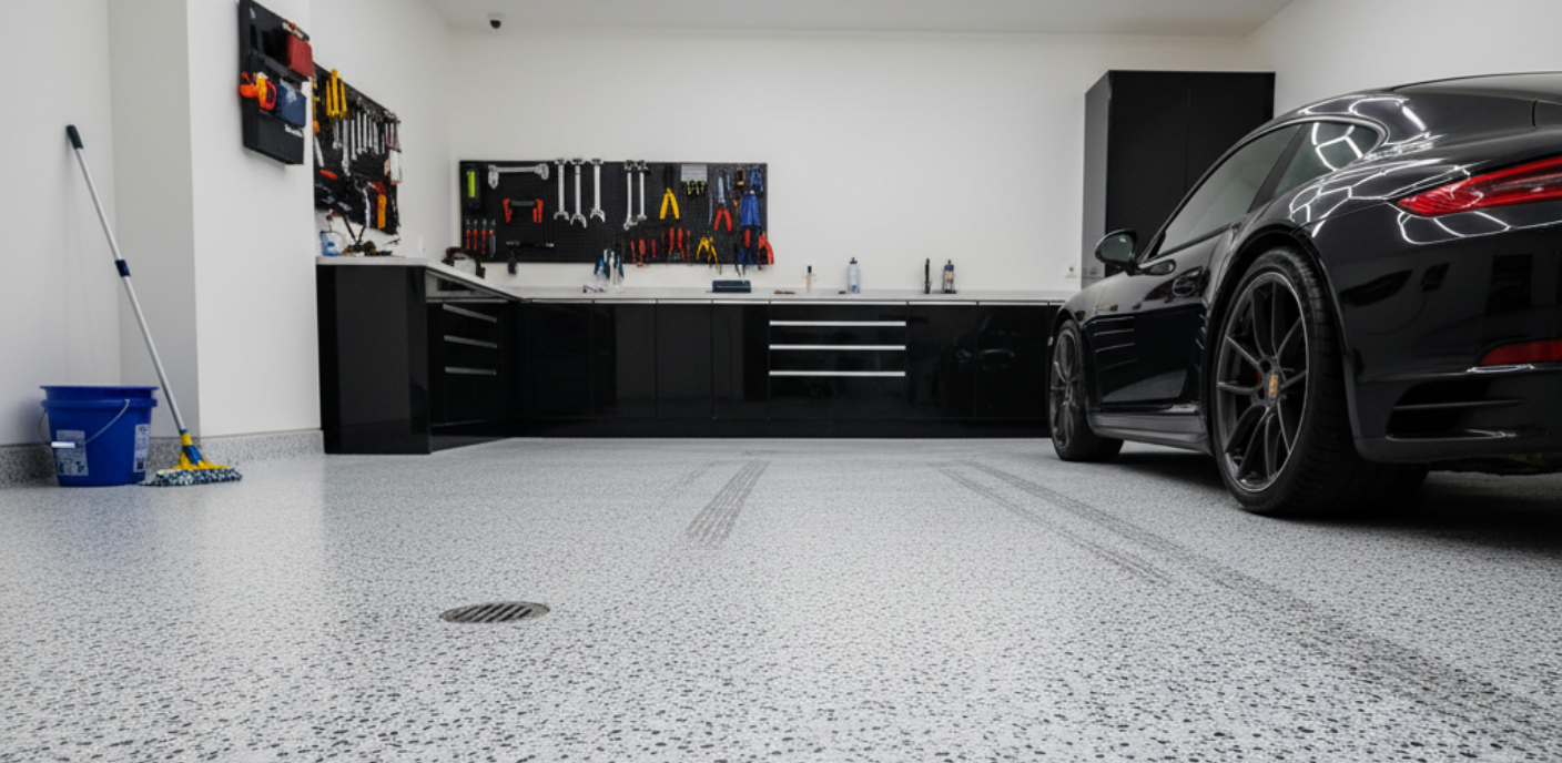 Epoxy flake systems are one of the most requested epoxy flooring solutions for garages, residential interiors, workshops, and commercial spaces. This system combines durability, texture, slip resistance, and a modern premium finish.